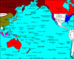 This is my map of colonialism in and around the Pacific. Astute readers will note that my attribution of colonial rulers to specific islands is not always historically accurate. Largely, this is because I drew this map as part of a game which assumed a Pacific overcrowded with voracious colonising powers. If this doesn't suit your game, you should of course feel free to change any or all of it.